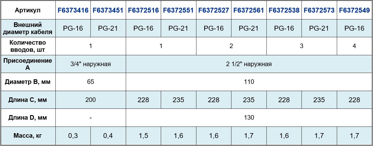 бетоном. Каждый кабельный ввод в нижней части снабжен резьбой для