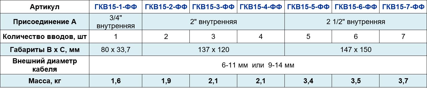 Подводный кабельный ввод, нержавеющая сталь, ГКВ15-1-ФФ