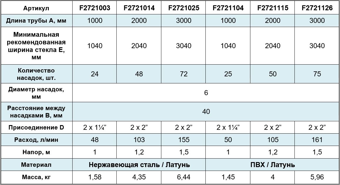 Расстояние между форсунками, мм